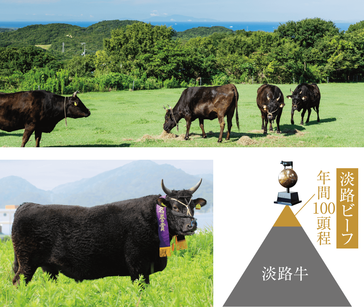 和牛の最高峰である「純血種の但馬牛」の中から、さらに厳しい審査基準をへて「淡路ビーフ」を名乗れるのは年間わずか100~150頭前後。