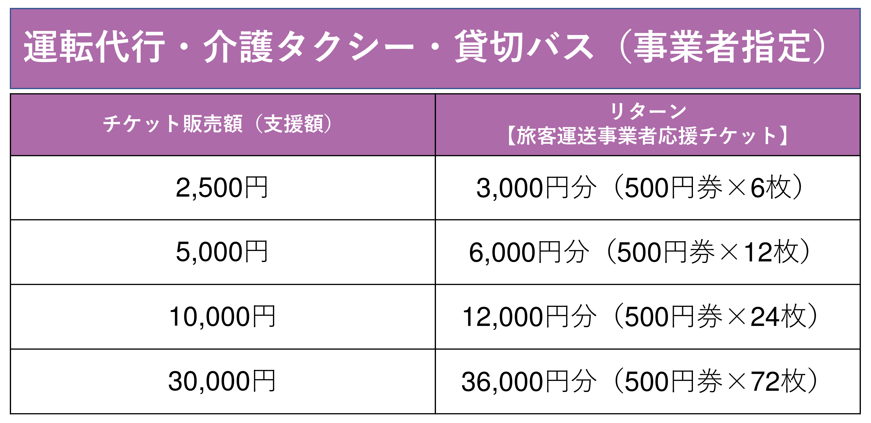 ➂「運転代行」・「介護タクシー」・「貸切バス」事業者で利用できるチケットの購入