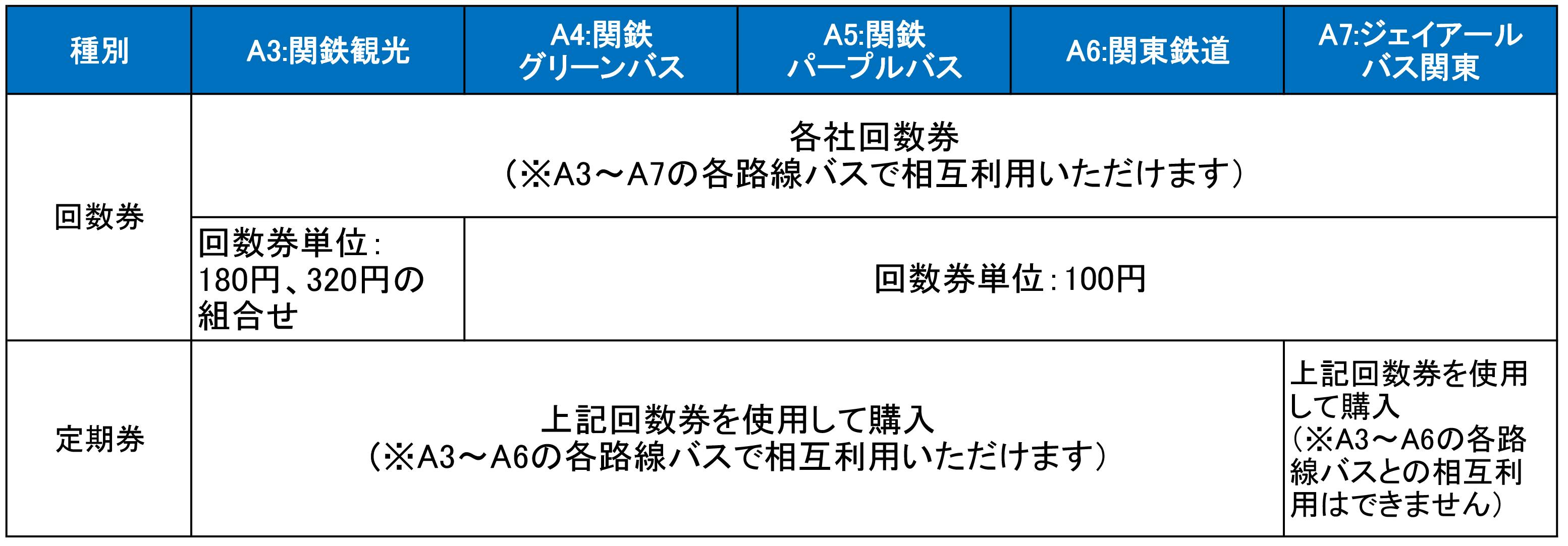 ※1 A3:関鉄観光は180円と320円を組合わせた回数券となります。