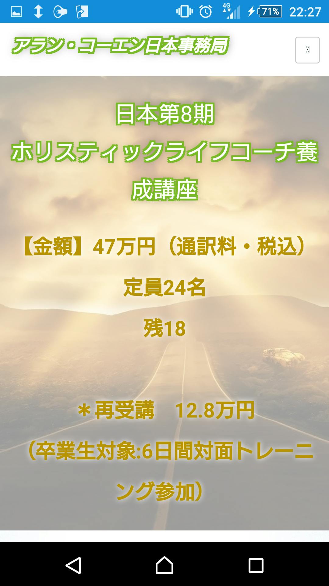定員が24名なので前金4万円を支払うと席が確保できるのですが資金がなくできておりません。