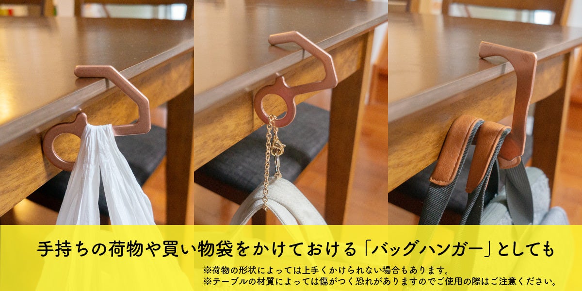 1.手持ちの荷物や買い物袋をかけておける「バッグハンガー」としてもご利用いただけます。