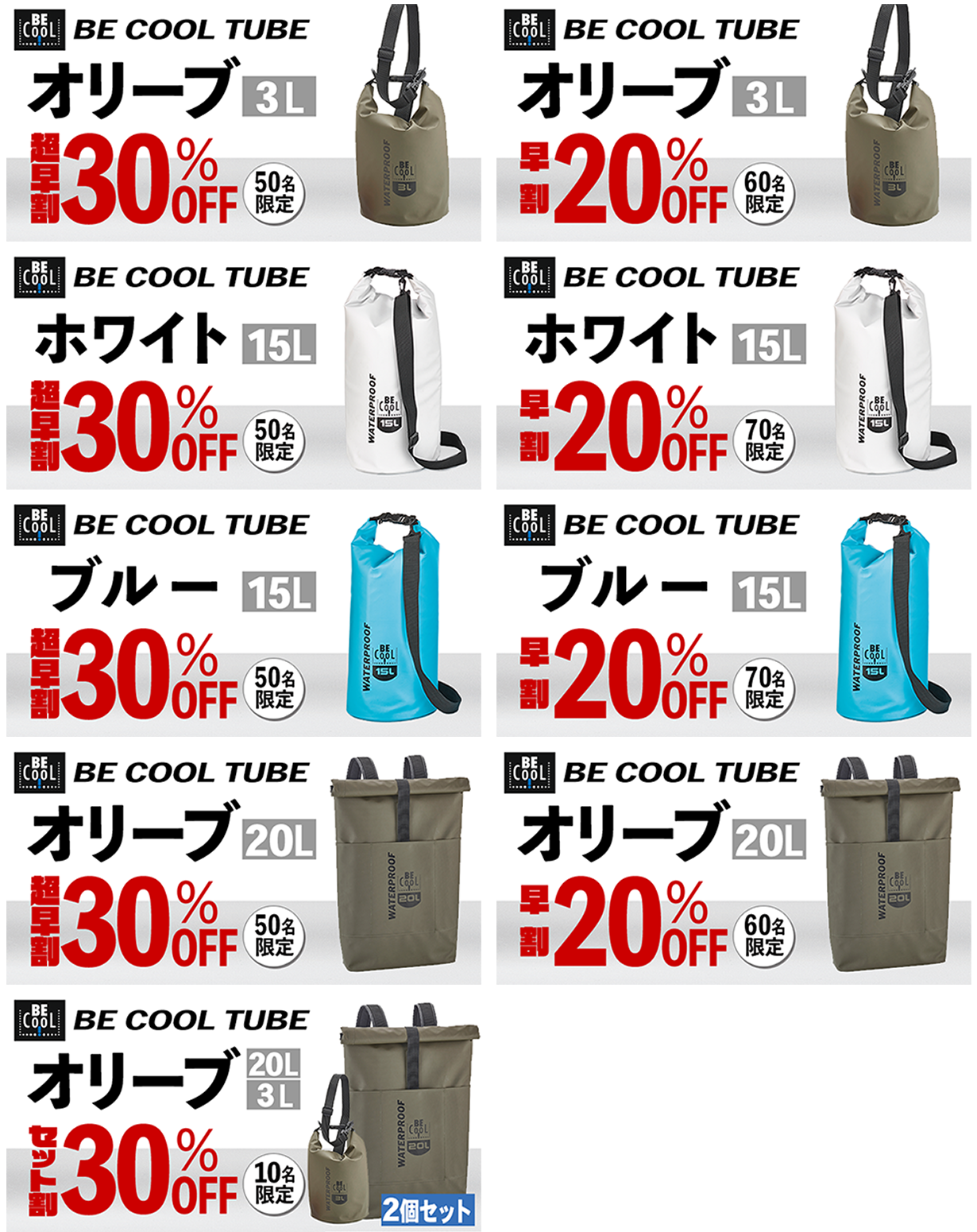 更に今回、新色オリーブ色のミニサイズ3Lとバックパック20Lも日本初上陸!