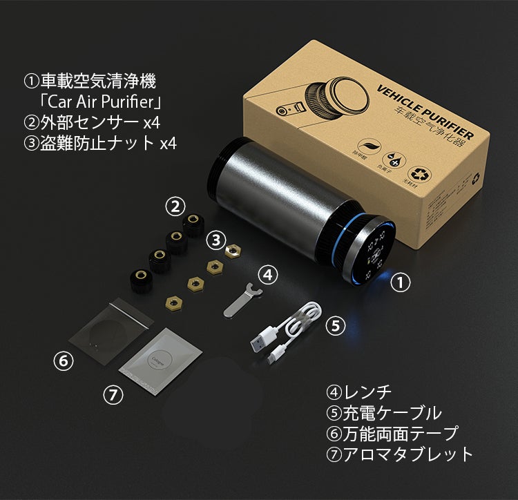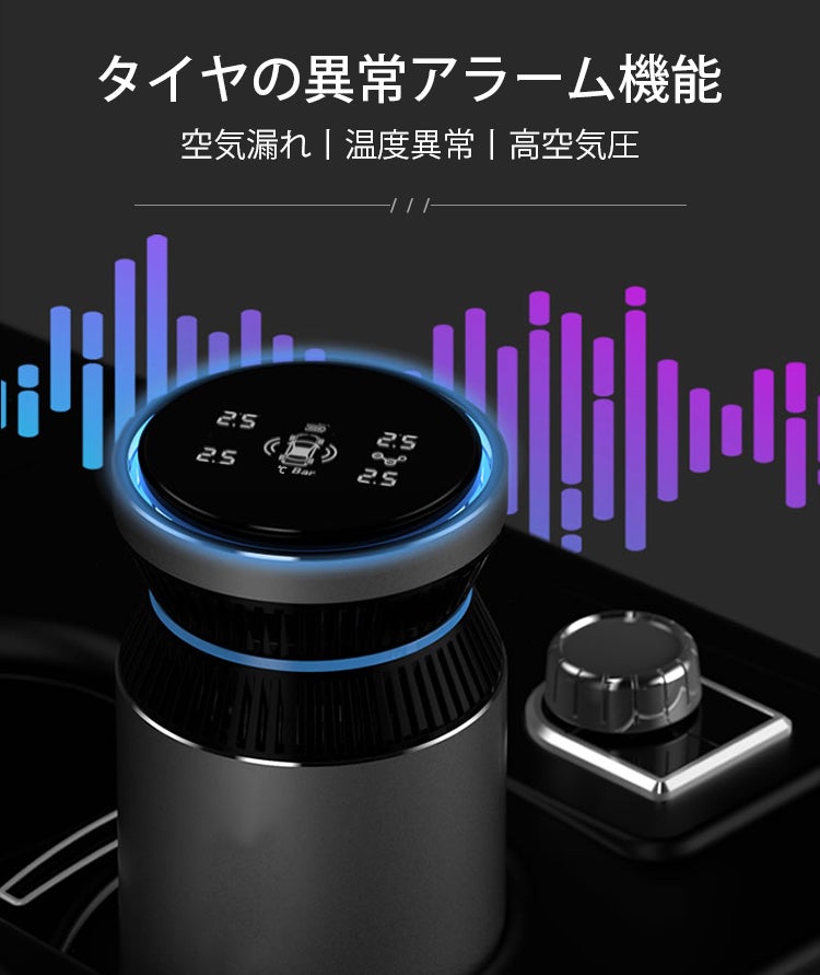 タイヤの空気モニタリング可能な車載空気清浄機「Car Air Purifier」