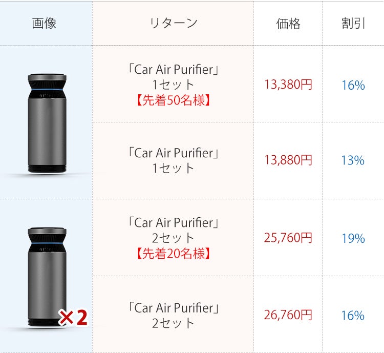 • unsyuでございます。車載空気清浄機「Car Air Purifier」へのご支援、誠にありがとうございました!ご挨拶が遅くなり、大変失礼いたしました。本プロジェクトは8/17(月)、69名様・974,160円のご支援を賜り終了いたしました(*^^*)ご協力いただきました皆さま、本当にありがとうございます♪発送は予定通り、11月末までの発送を予定しております。今暫くお待ちくださいませ!今後ともunsyuをよろしくお願いいたします。 もっと見る
