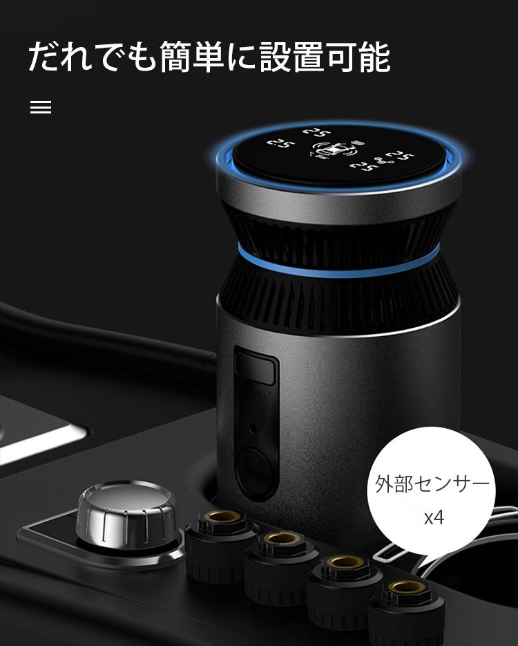 「Car Air Purifier」なら、空気を清浄しながらタイヤの空気圧&温度チェックが可能!