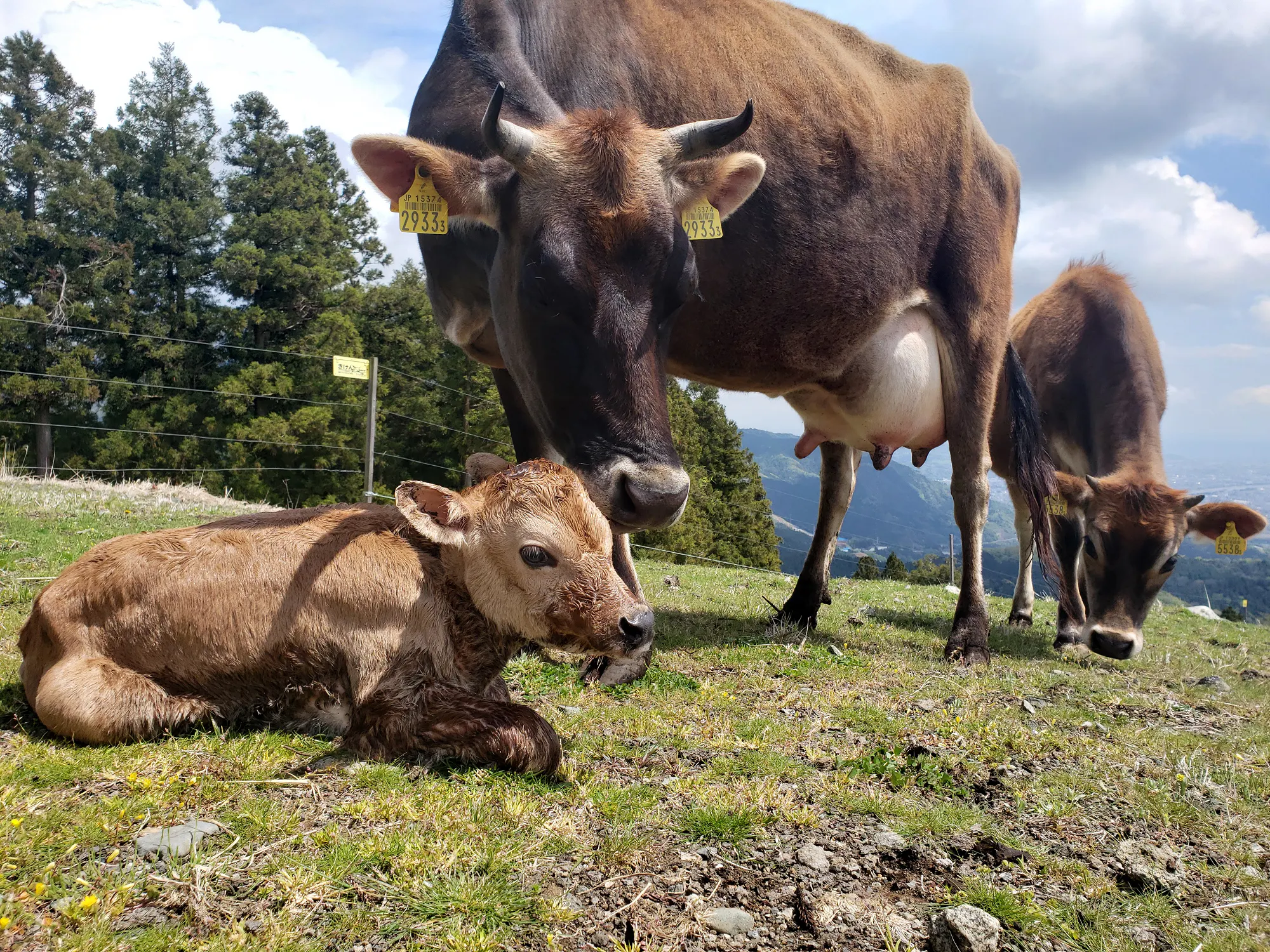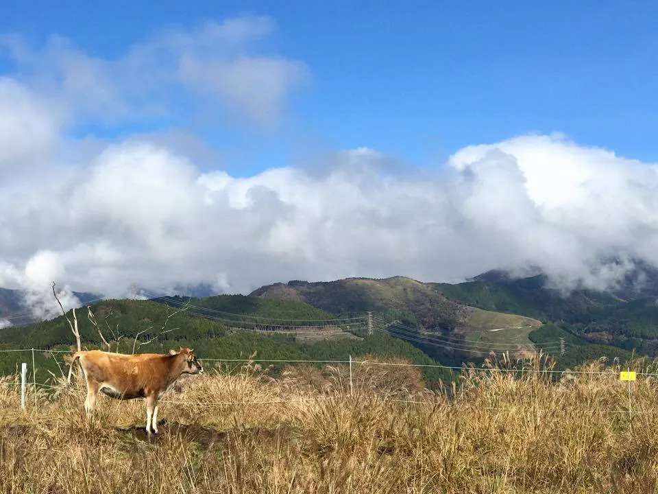 山地酪農とは読んで字のごとく山で牛を飼う酪農のことで、牛舎もない山の斜面にジャージー牛を1年を通して完全放牧をしています。
