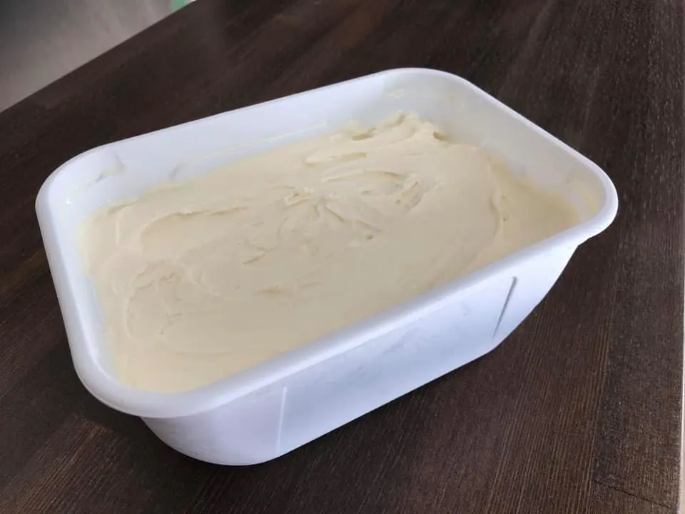 本当であれば小分けされたカップアイスの方が食べやすいと思いますが、今回はミルクを廃棄させないために使用量とスピードを重視し、写真のような業務用2Lパック詰めにさせていただきました。