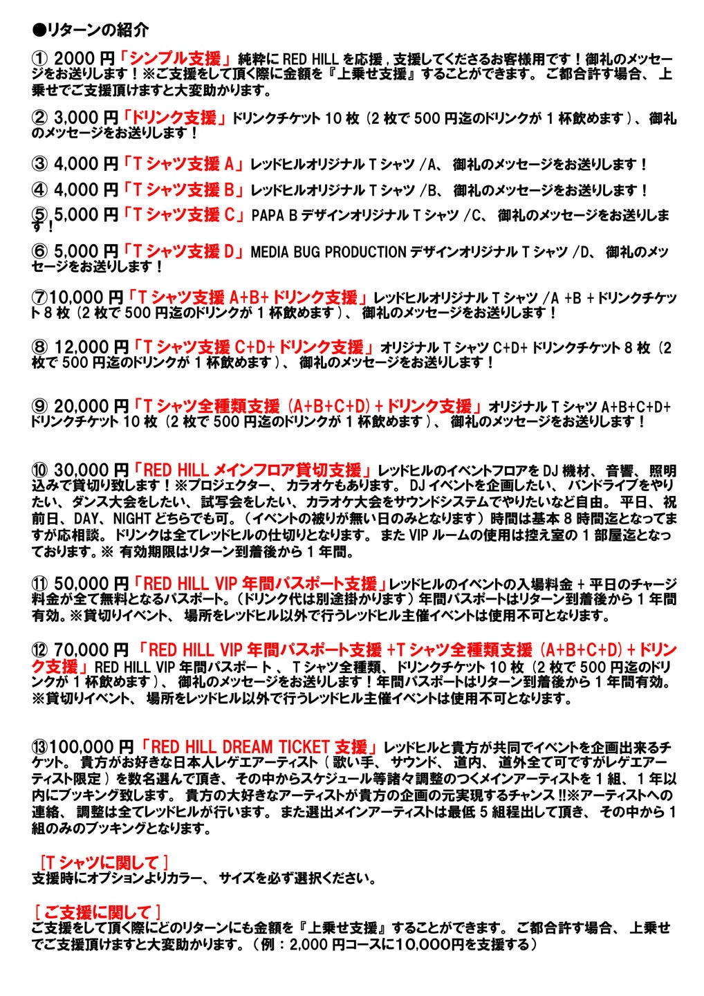 まだまだ続くであろう自粛しながらの営業、クラブ等の復興には1年以上かかることが予想される現状、これからのレッドヒル、そして室蘭レゲエバッシュ存続の為、誠に心苦しいお願いではありますが多少でもご支援のご検討をお願いしたくプロジェクトを立ち上げる事を決意致しました。
