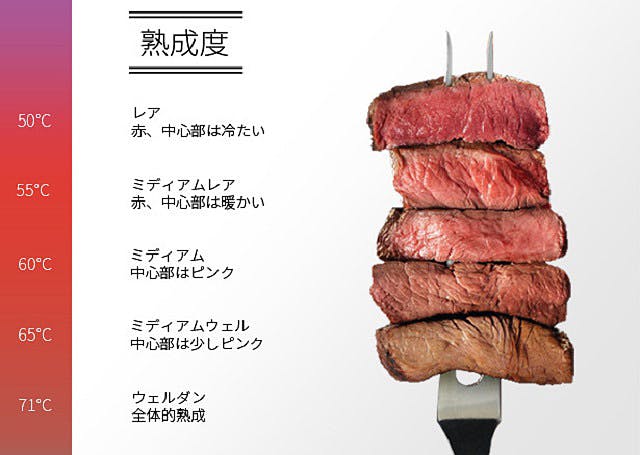 料理は熱のアートと言えます。 タンパク質に熱を加える場合、70℃を超える辺りで固く縮んでほとんどの肉汁を失ってしまいます。科学的に言えば、美味しい肉調理するには、57℃辺りがもっとも柔らかくなり、肉汁もたっぷりです。