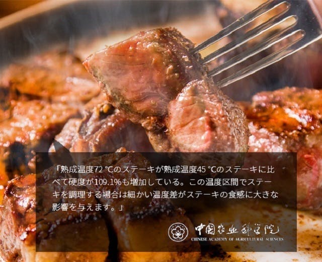 おいしさをつくるのは「熱」の科学です。2015年1月に発表されたの研究報告「熟成温度と切断方式がステーキの食感と品質に及ぼす影響」によると細かい温度差がステーキの食感に大きな影響を与えます。