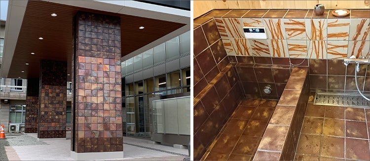 画像の備前焼タイルは四隅に丸い穴が開いています。