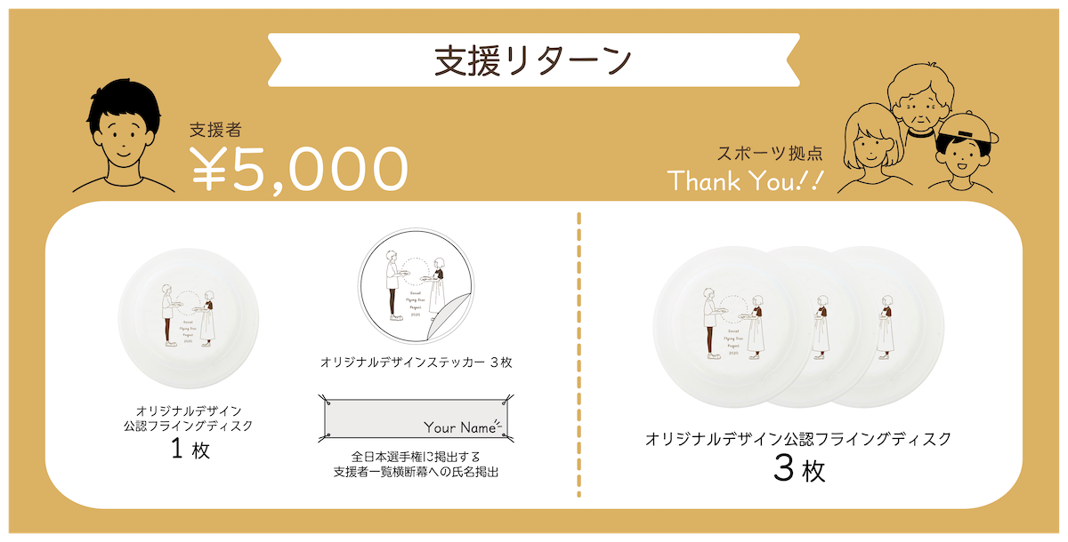 ※目標達成で、約5,000枚のフライングディスクを日本中に届けることができます。