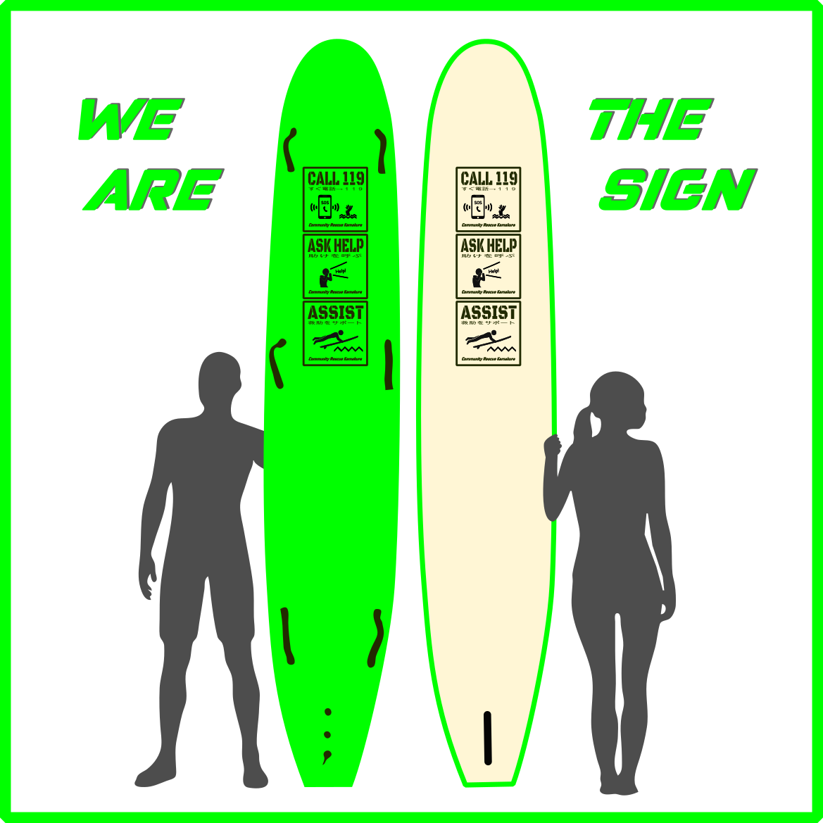 この夏、Community (rescue) Board 50本を、海沿いのご協力いただける店舗等の施設に常備し、地域コミュニティの皆さんなら、いつでも誰でも海で遊んでいただけること、を目指しています。
