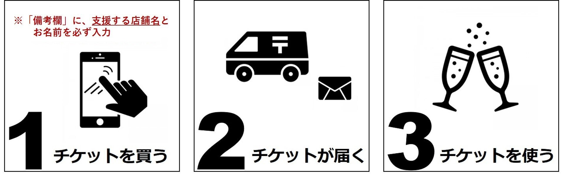 (注:数量と店舗数が異なる場合は、チケットが発送できませんのでご注意ください。その場合、支援金は備考欄に記入いただいた店舗に均等に支援させていただきます。ただし、1,000円未満の端数が生じた場合は参加店舗全体への支援として取り扱わせていただきます。)