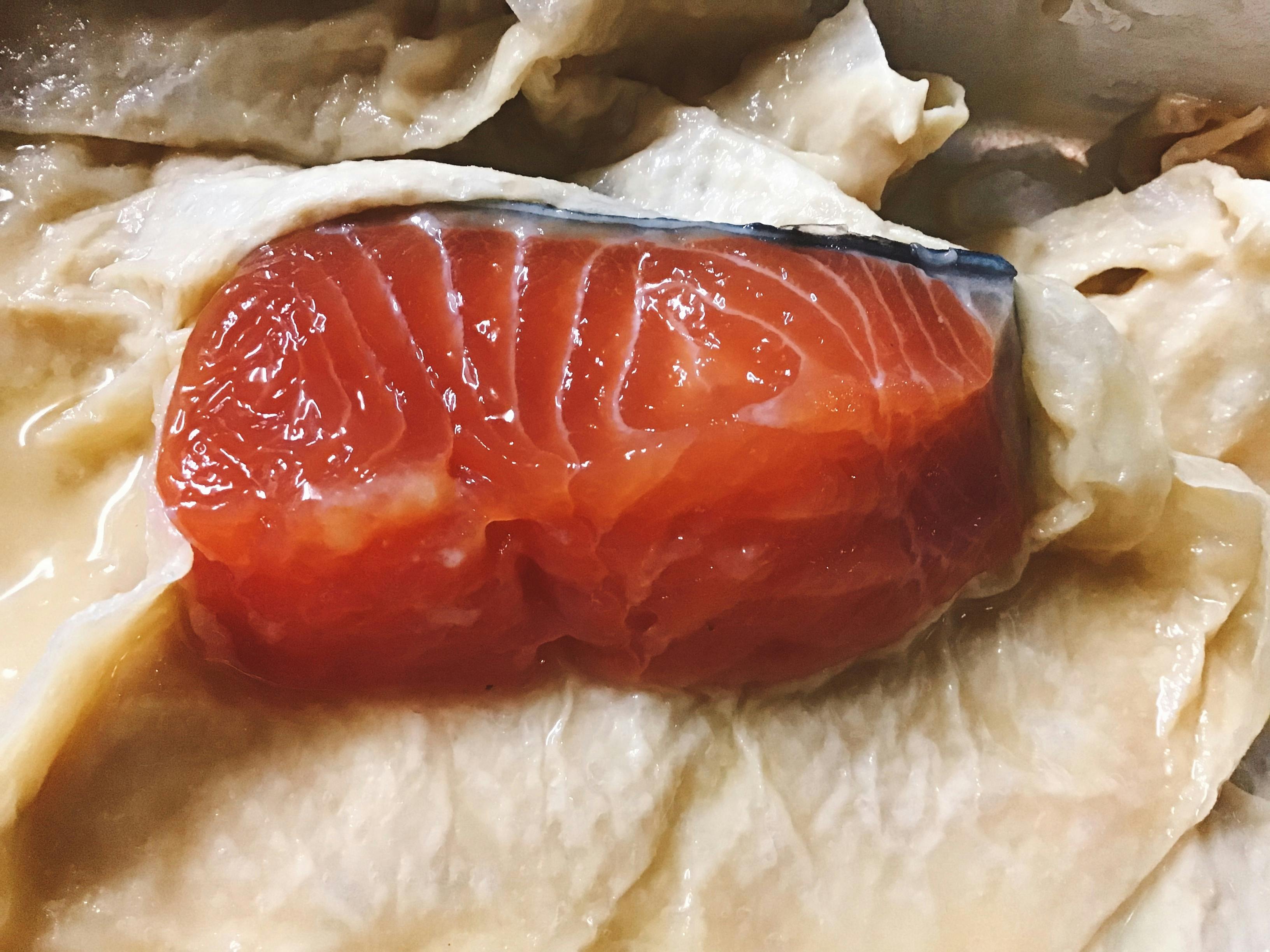 こちらはサーモンの粕漬けです。艶々の照りが美味しさを物語っていますよね^ ^