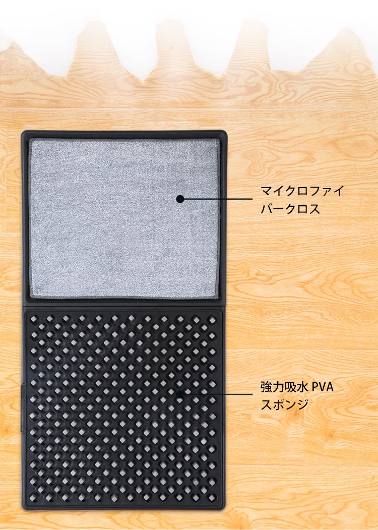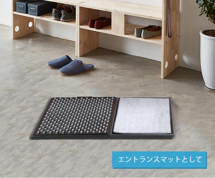 強力に水分を吸収するマイクロファイバークロスで、しっかり靴底を拭き取るので、水が玄関先を濡らすこともありません。