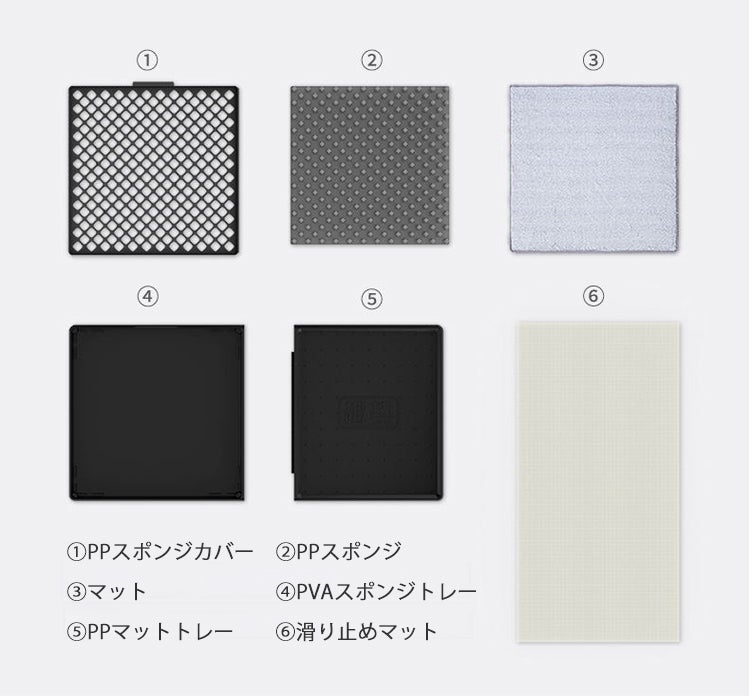 1、初めてのご使用の際は、PVAスポンジトレーにきれいな水を1ℓ注いで下さい。
