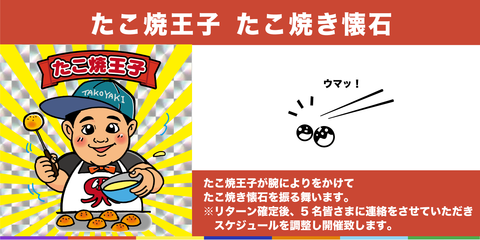 通常は関係者のみしか食べれない「たこ焼き懐石」をSTAYTIONご覧の限定5名だけリターンでお食事いただけます。