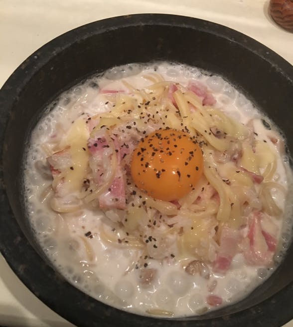 ↑こちらは、石焼で作っているパスタ「石焼カルボナーラ」