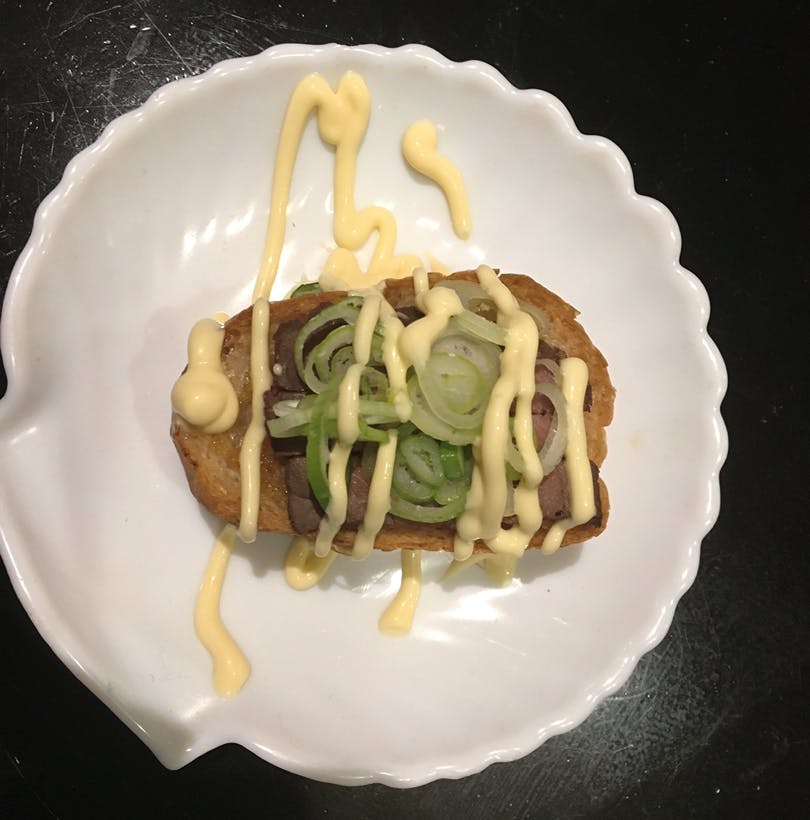 ブルスケッタというのは、パンの上にオリーブオイル、ニンニクを塗り食材を乗せてオーブンで焼いた物ですが、当店では鴨とオクラ明太を食材で使っており、どちらも人気の商品です。