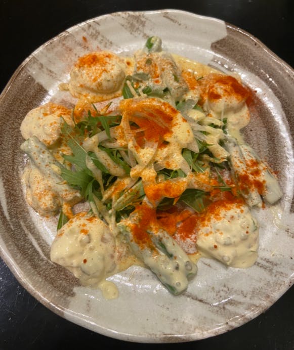 前は、マスタードクリームを牡蠣に使っていましたが、今はマスタードクリームをお休みにしているのでペペロンチーノやクリームで作っています。 牡蠣は毎年必ず2Lの物を使っているのでデカく美味しいとお声を頂きます。毎年、冬になってくるとメニューに入れてます。