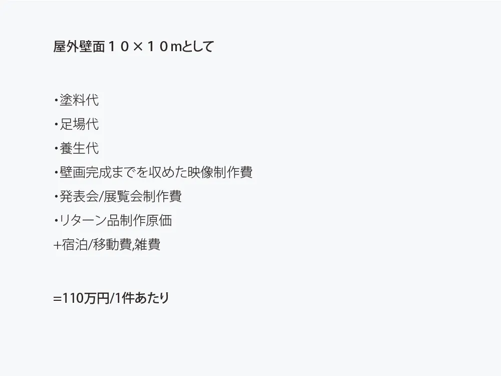 ・また目標金額のストレッチゴールとして、集金額に合わせて壁のサイズ/ミューラルの件数といった規模を調整する予定です。