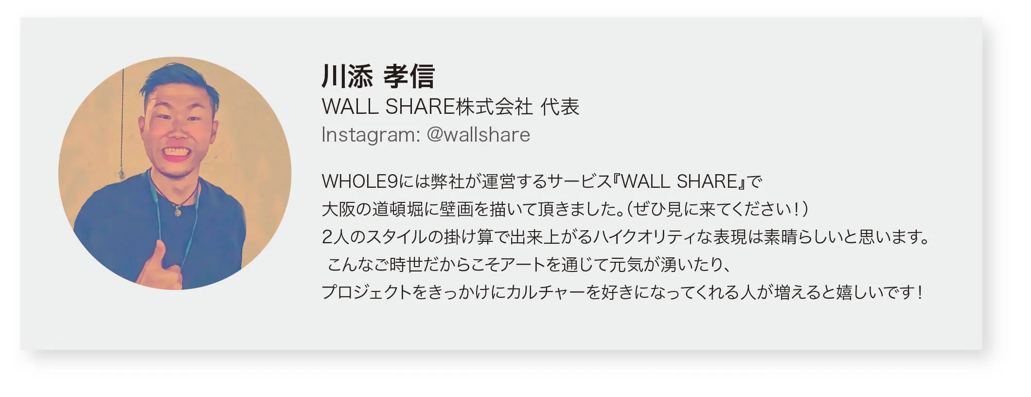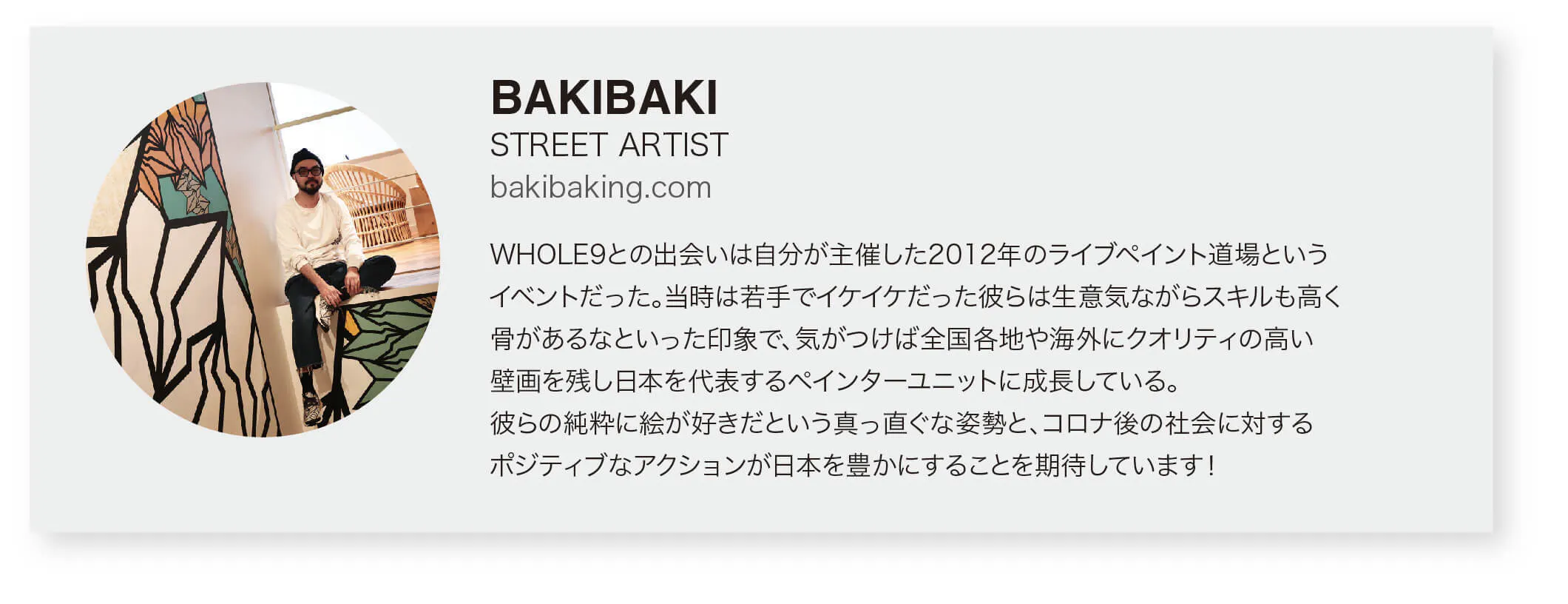 上記[①壁面の募集]についてはコメント、もしくはinfo@whole9.jpまでお気軽に情報をお寄せください。