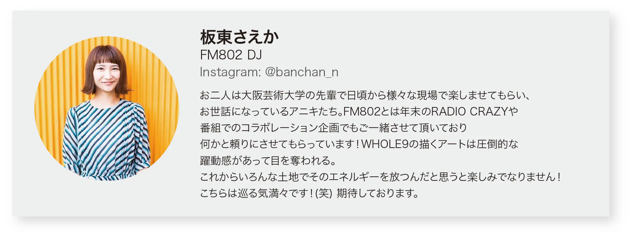 協力:BnA株式会社、digmeout、FM802、FM COCOLO、TokyoDex、株式会社nuries