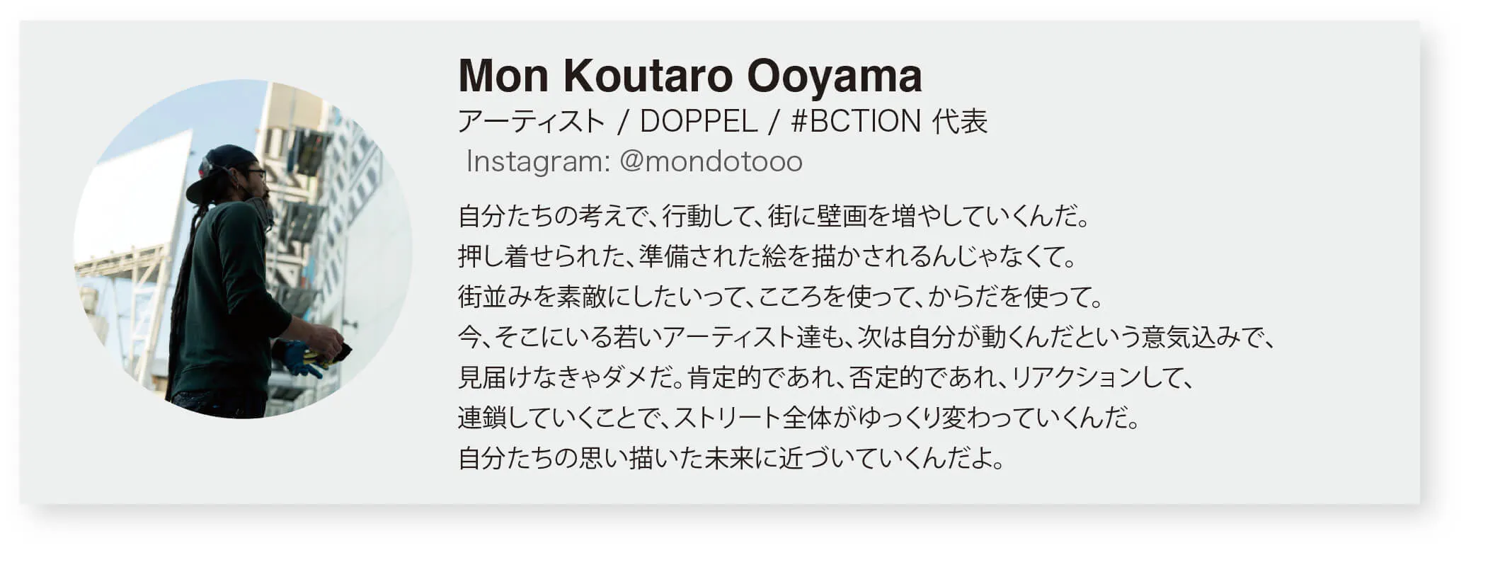 半分は僕たちのエゴですが、その規模を街に広げて、誰かの気持ちが明るくなれるような絵を描きたいと思っています。