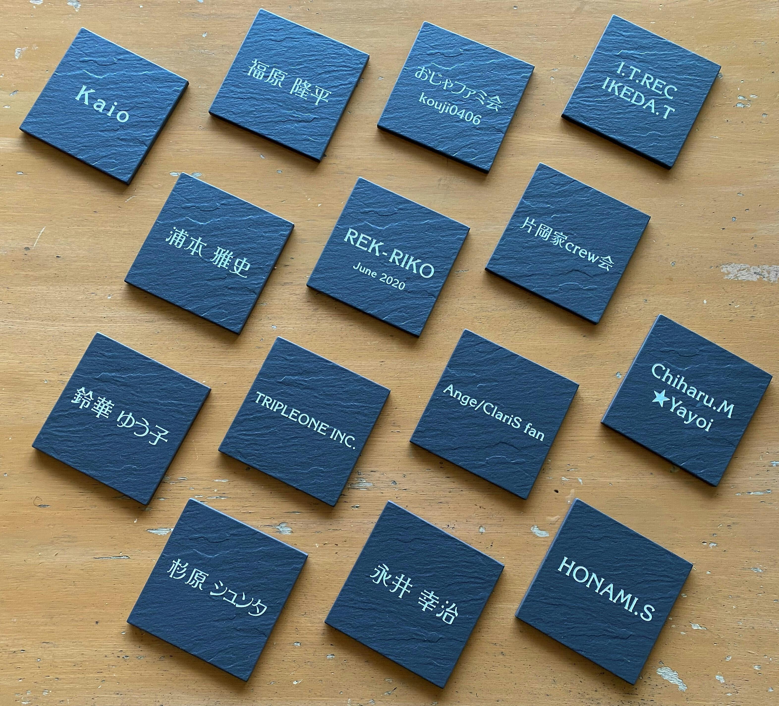 ・¥5,000 / オリジナルTシャツ(3種類からお選びください)&オリジナルステッカー・¥10,000 / あなたのお名前がオリジナルテーブルに刻まれる!参加権 OUT OF STOCK