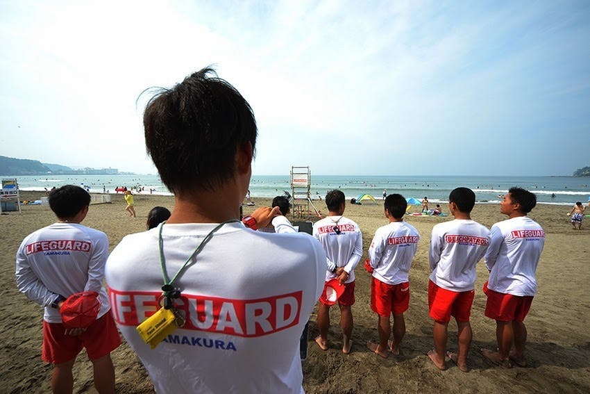 全員がマッチョで色黒かはさておき、我々はライフガードとして毎年7月、8月に鎌倉の3つの海水浴場(材木座・由比ガ浜・腰越)での監視活動を行っている団体です。