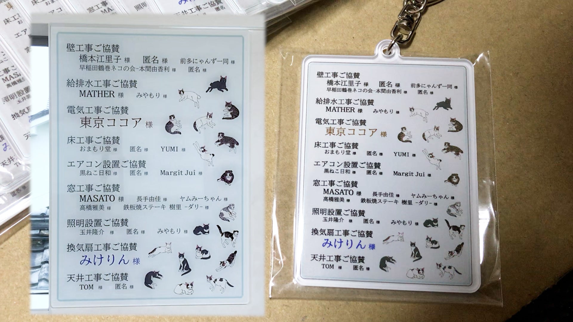 ご支援いただきました工事項目の個所にネーム入れをし、それを新猫家内に掲示させていただきます。