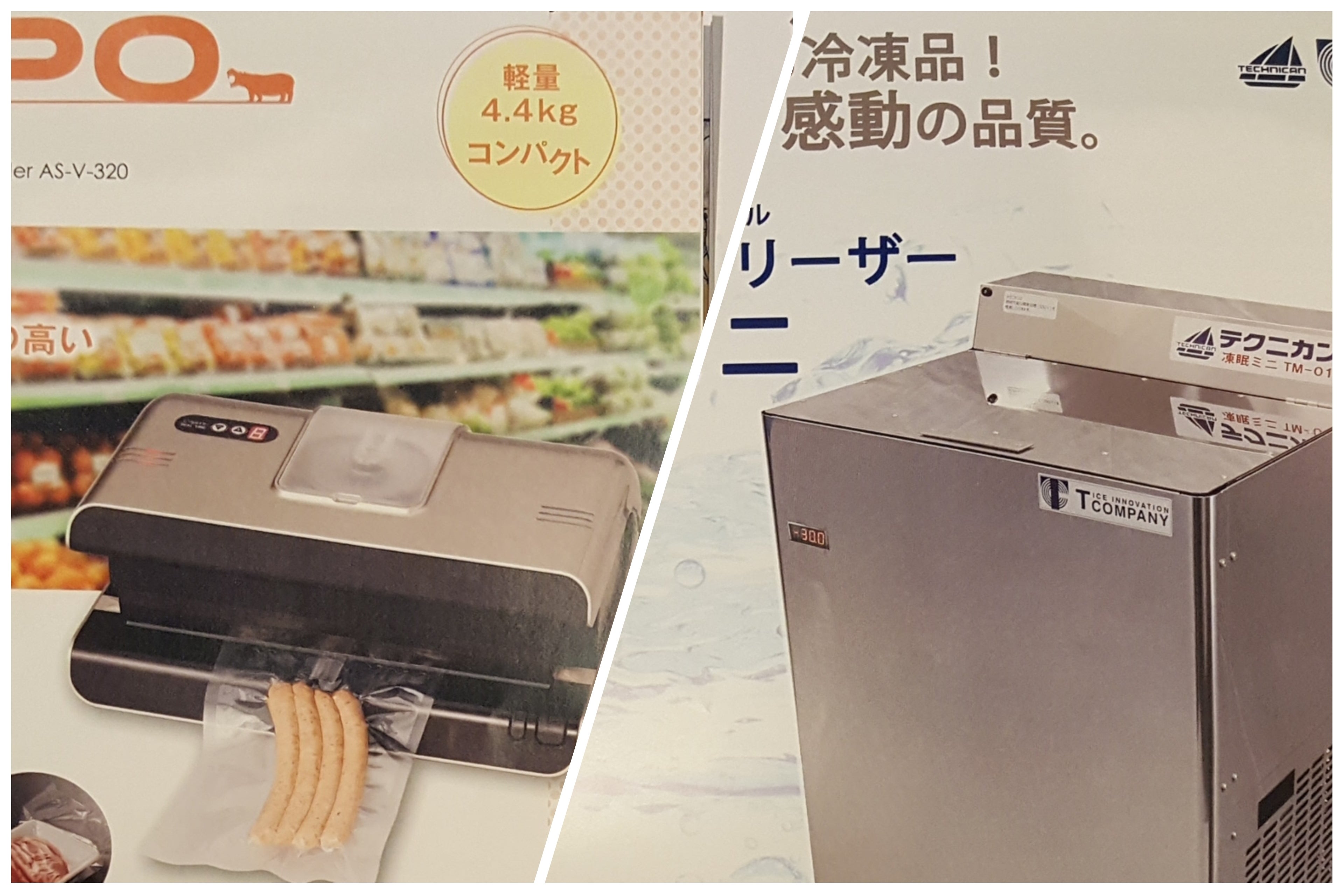↑写真左は真空パック機(脱気シーラー)、右は急速冷凍機