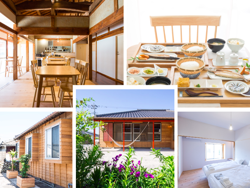 里集落のはずれの、大きなあこうの木の下にある平屋の一軒家で、木のトンネルを抜けると海まで歩いてすぐの海辺に建っています。また、私たちの運営しているFUJIYA HOSTELや山下商店甑島本店なども半径 400メートル圏内にあり、歩いて回ることのできる小さな集落に点在させています。
