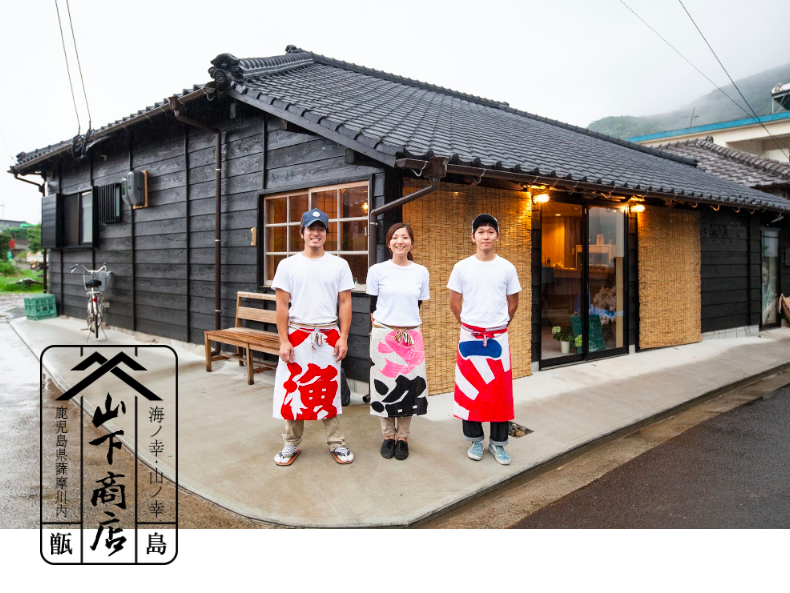 里集落の人口は、現在およそ1,000人で高齢化率は52%を超えています。コンビニはもちろん、高校もないような少子高齢化の進む国境の島で育ち、私自身も中学を卒業後、15歳で一度島を離れることになりました。そして、今からおよそ10年前に甑島にUターンし、資本金10万円という、小さな会社を立ち上げました。それからしばらくして、氷屋だったという一軒の空き家を譲り受け、いつの日かここにたくさんの人々が集まってくる風景を夢見て、古民家の再生プロジェクトをスタートさせたのでした。
