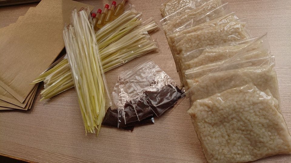 岡山有機無農薬野菜(キャベツ・人参・玉ねぎ等)で作ったベジブロスと呼ばれるブイヨンで雄町米を仕上げ、黄ニラと備前味噌パウダーとオリジナルの黄ニラオイルは別添になっています。歯ごたえや香り、風味をお楽しみください。