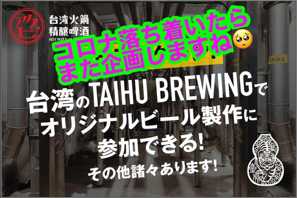 なんと台湾で超人気のTAIHU BREWINGとのコラボビール案&仕込みができちゃう&TAIHU直営店での食事会付!本当にスペシャルなここにしかない体験です!!本当に二度とできないプラン内容です!!100%こちらが作りたいものが作れます♪みんなでワイワイ飲み会ミーティングしながらビール案出して、美味しくて楽しいビールを一緒に作りに行きましょう!!何ならビール名やラベルまで決められちゃうかも!!?