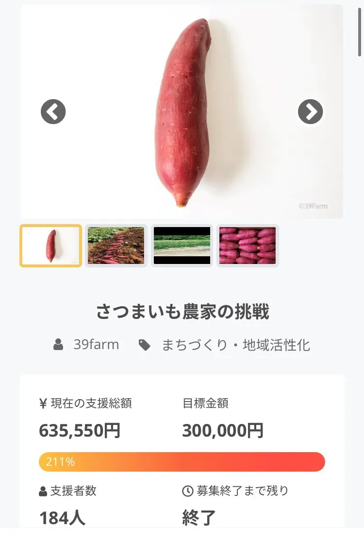 2023/05/21 13:56新たなプロジェクトページはこちら!今年も苗植えをスタートすることができました!!!運送費・苗の高騰により多少値上げいたしました。今年も最高に甘くて無農薬のさつまいもを責任をもって育て皆様にお届けいたします。39ファーム もっと見る