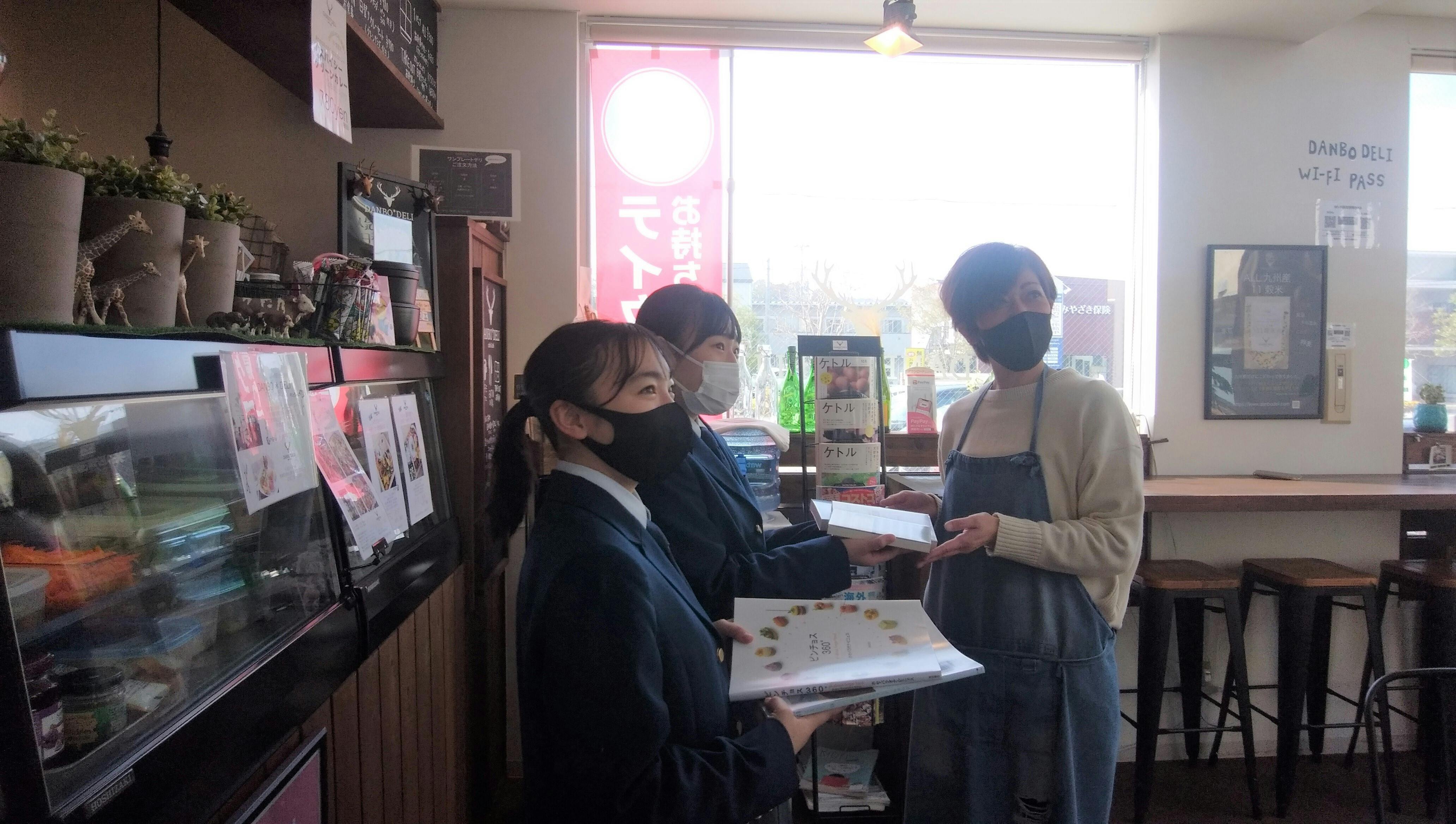 2021/02/14 00:26コロナに始まり、、、コロナに負けず、、、年末に始まった配本が緊急事態宣言や試験や模試、受験のタイミングなどの影響で延び延びになってしまっていましたが、ようやくお届けできるようになりました!8店舗目は『Danbo*deli 』さん。日向高校の先生たちにも大人気のお店で、体育祭などのイベントの際にランチをお願いすることも。彩りが華やかで健康的な食事を提供してくださいます。今回は、お店の設えやフードの盛り付け、そしてお客さんの層を参考に選書をさせていただきました。ダンボデリさんはデザインセンスが光る店舗さんなので、その「シュッ」としたイメージ(まさかの擬音)をどういう本のラインナップで表現すればお店のイメージと調和できるかなー・・・と悩みつつ、お客さんはそのセンス自体に憧れがあるはず!と目星をつけて、その本を手に取るとちょっと意識を高く持てるような、自分でも「やってみたい」と思えるような本をチョイスさせていただきました!日向高校に設置させていただいた本も、これまでの店舗さんで設置させていただいた本も、いずれも多くが日向市内ではなかなか手に取ることができない本たちです。簡単に言い換えてみると「都会的」な本かもしれません。けれど、その本に引けを取らないお店ばかり。(おかげさまで日向高校の生徒たちも興味関心がぐんぐん伸びています)各店舗さんにはオーナーさんの意識が脈々と息づいていて、「日向にこんなお店があるってすごいことだよね!」と不断の経営努力に気づかされます。まだまだコロナ禍ではありますが、ぜひ、訪れてみてくださいね(^^) もっと見る