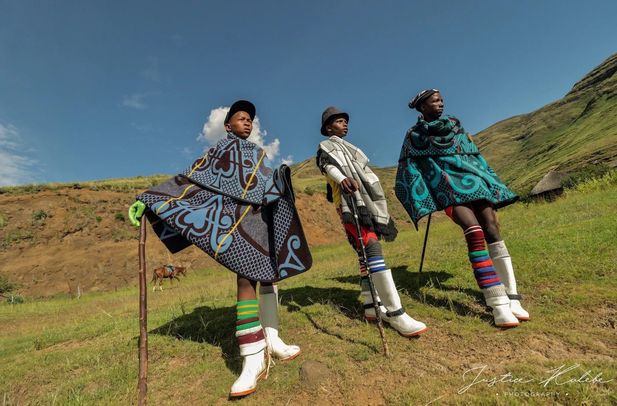 これらの写真はレソトの田舎で撮られた写真なのですが、レソトにはきれいな景色やブランケットを身にまとう独特な服装(四季があって冬には雪も降ります!)、移動手段が馬だったり放牧中心の生活だったりと自然や生き物と密接に繋がった暮らしがあります。