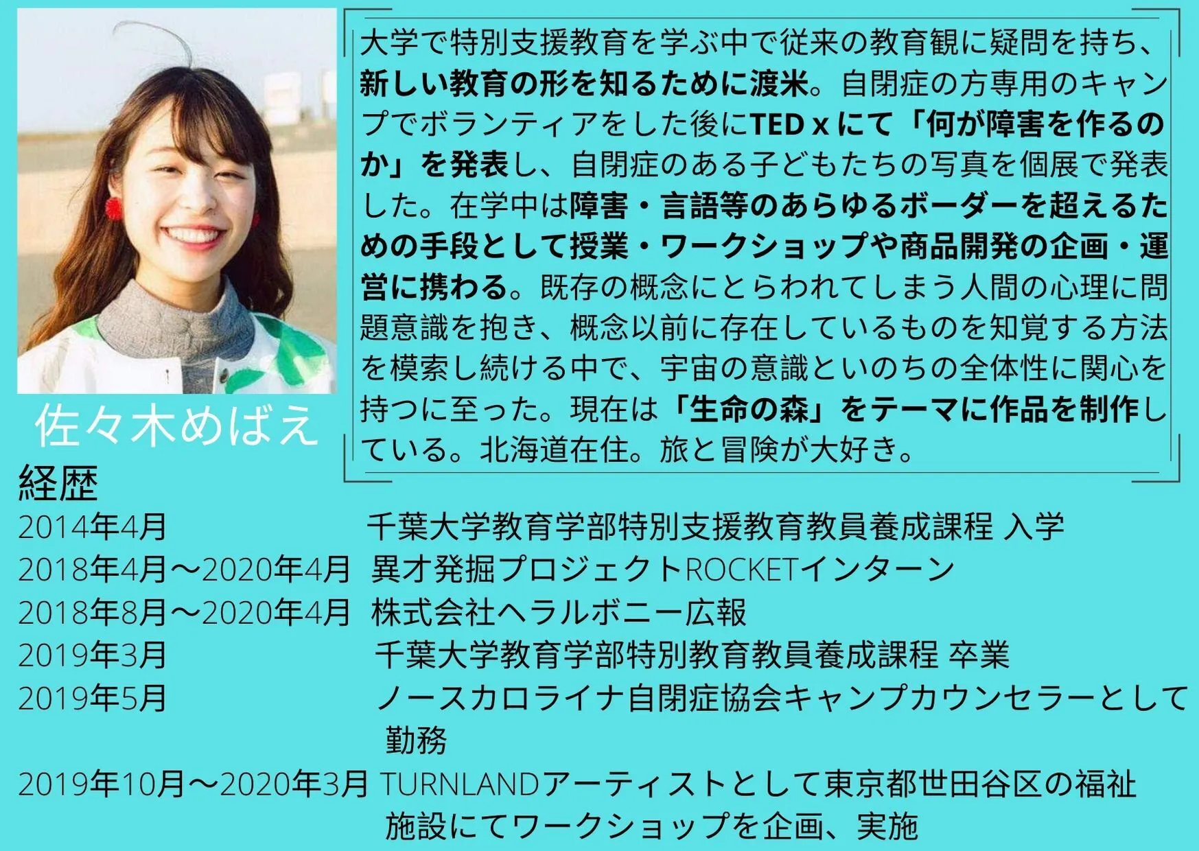 佐々木めばえさんが登壇したTEDx Chibaの動画はこちら⇒何が障害を作るのか