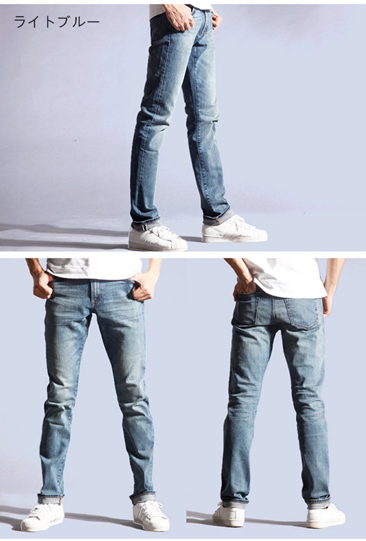 ストレッチの効いたデニム素材で、普段使いからスポーツまで多彩なシーンに対応。体のラインにフィットするスキニーシルエットだが、テーパードをきつめに入れることでもも周りは動きやすい。