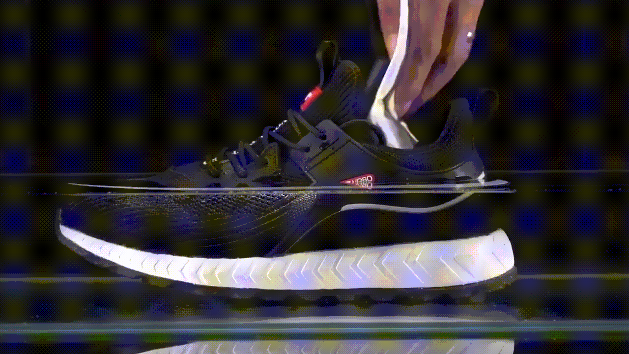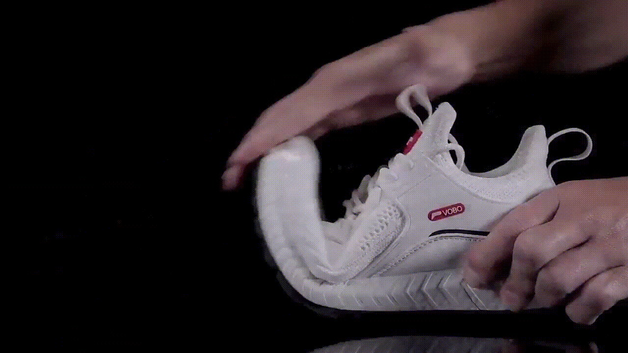 「VOBO-ウォボ-」は生物の構造や機能などから着想を得て新たな生物模倣技術を採用した素材を使っています。高層素材に開いた無数の極小な穴を通じて空気を排出や取り込むことで呼吸を可能にするというエラ呼吸の仕組みと高分子ナノ汚れ防止技術を採用したため、より速く走り、正しく健康的な安定感のある歩行が可能、走る時の蹴り出しをスムーズにサポートします。
