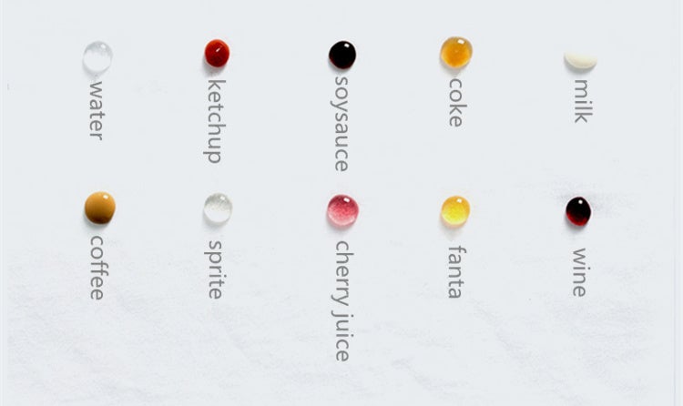 表面に先端高分子ナノ汚れ防止技術を採用、汚れが付きにくく、落としやすい、水、汚れを浸入させない。日常生活でよくあるコーヒー、醤油、ワインなどのはじき、濡れ、ハネ、汚れからしっかりとガードします。