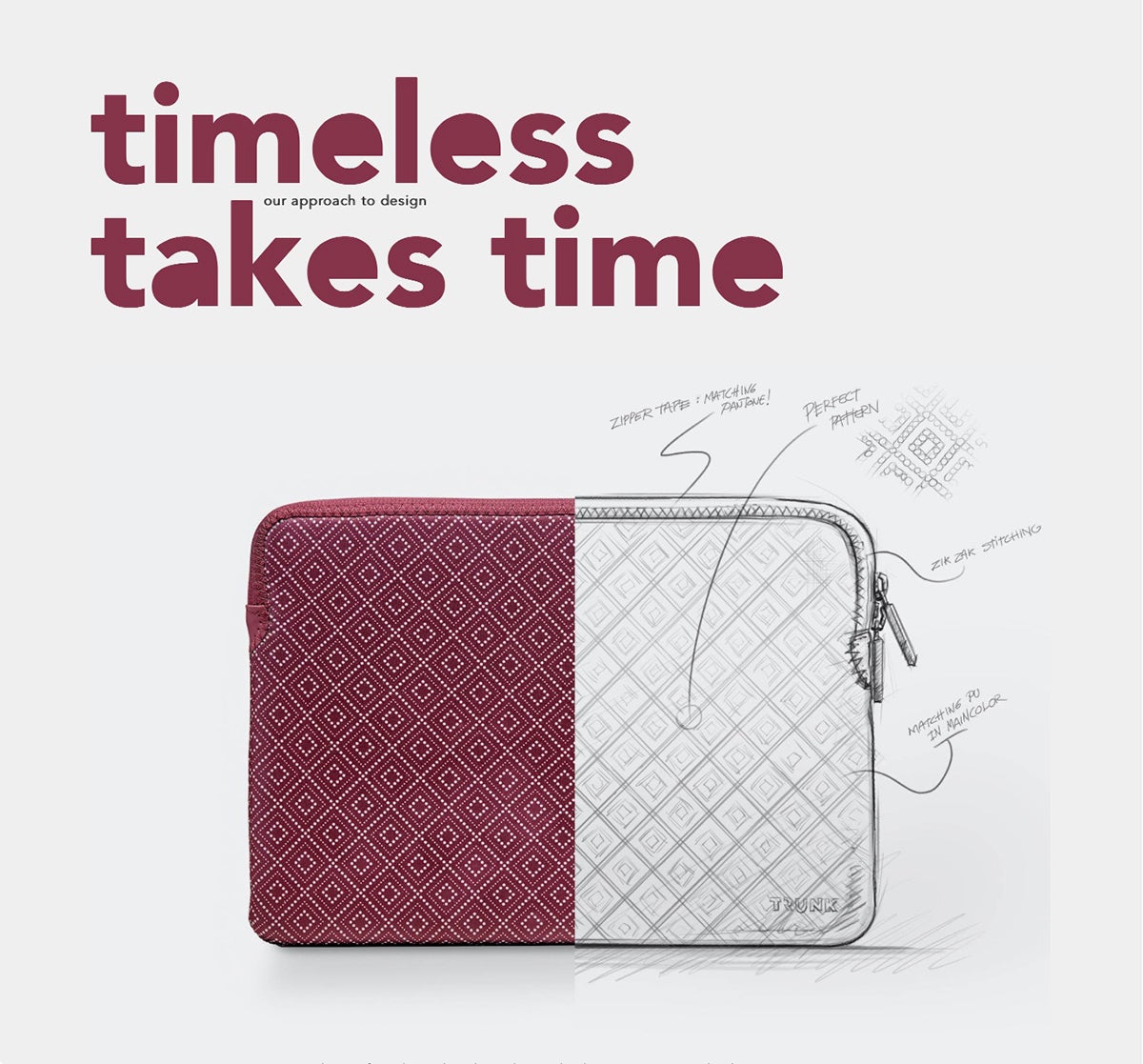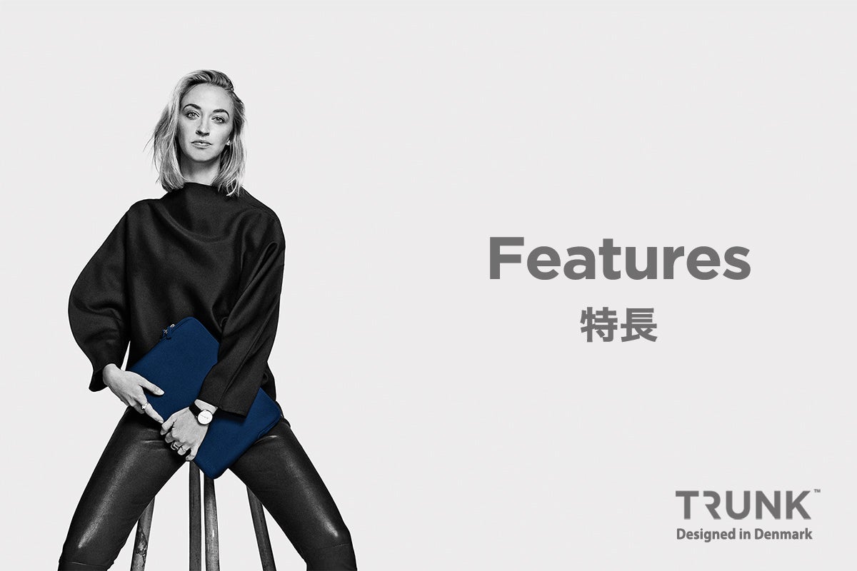 TRUNKスリーブケースは、無駄を削ぎ落とし、ユーザーにいちばん大切な要素にフォーカスしています。Don’t be loud。よく使うことがない付加機能であれば、はじめから必要ないものです。シンプルなことは美しく、使いやすく、複雑より何倍も優れています。大人の雰囲気が周囲も魅了する、いつまでも色褪せることのないタイムレスデザインです。