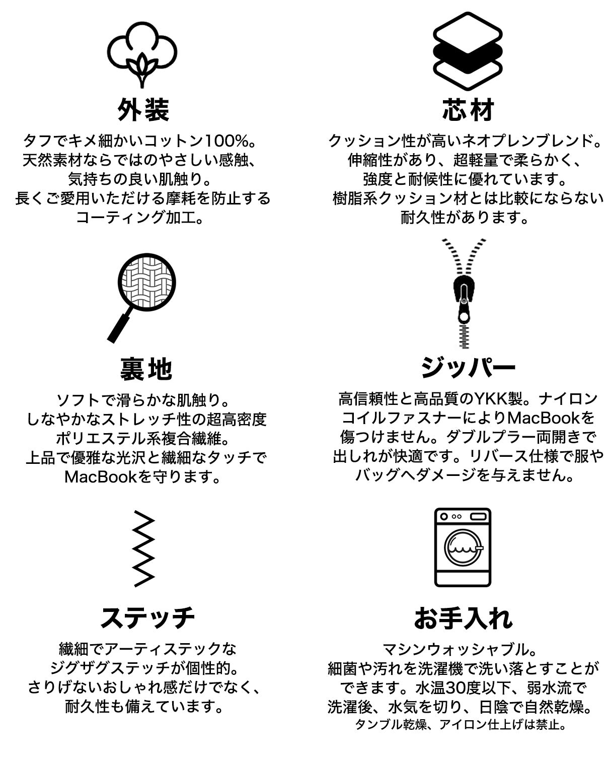 上質なものを長く使う。ユーザーへ全ての要素で満足感の高い製品を提供すること、そのために耐久性の高い最適な素材とパーツを厳選すること。天然素材や高耐久性パーツを採用するのは、サステナビリティへの貢献で当然のことです。その結果、経済的パフォーマンスが高く、ユーザーがMacBookを何年間も安全に保つことによって、無駄な支出を削減することができます。TRUNKは、人類共有の地球環境を少しでもきれいに、スリーブケースでMacBookを安全に保管し、少しでも長く愛用していただくことを通じて、持続可能な社会へ貢献しています。