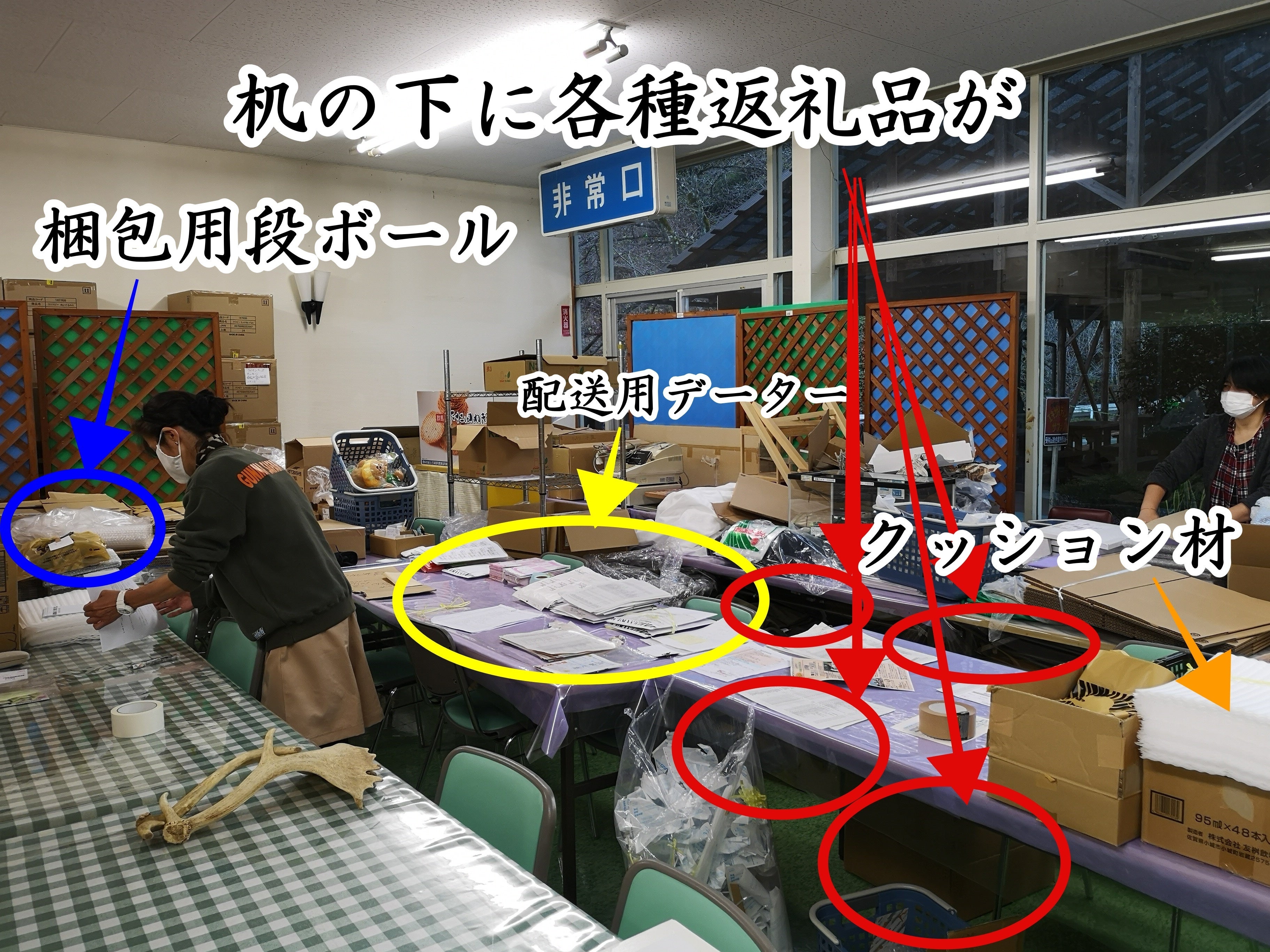 2020/11/04 19:18返礼品をお待ちの皆様、大変お待たせしております。本日は返礼品梱包の現場の状況をお伝えいたします。梱包作業は当園レストランの団体フロア片隅をお借りしております。レストラン内ですので団体様の予約状況によっては返礼品の大移動やスペースがなくなり作業の中止等もございます。上記の写真は団体様の準備のため、返礼品等が机の下にしまわれ、限られたスペースで作業をしているところです。発送作業は売店が請け負っております。当然ですが売店も普通に営業しております。土日や昼時など混雑状況によっては作業できる人がいないという状況もございます。また、唐突に人数も増やせません。なぜなら何も知らない方が作業に加わると良かれと思ってしたことが裏目に出てしまい、何をどこまで発送したのかなどの確認作業が取れなくなってしまうためですこちらは写真集の発送準備の写真です。写真には写っておりませんが、このテーブルの先、テーブルの長さ×5の場所にお名前が印字された写真集がずらっと並んでおります。発送票に印字された写真集のお名前を確認し、一冊ずつ探しての梱包作業となっております。なおこの私服の方は、社員の家族でボランティアで作業を手伝っていただいております。データー等の住所確認などもお手伝いいただいておられますが、毎日来られる訳ではありません。※なお、この写真撮影の後、団体準備のため写真集と共に一番上の写真の場所に大移動となりました。また、休園日には梱包・発送作業もお休みです。以上の状況を鑑み、ご理解を頂きまして、個別のお問い合わせはお控えいただけますよう、ご協力をお願い申し上げます もっと見る返礼品の発送状況について