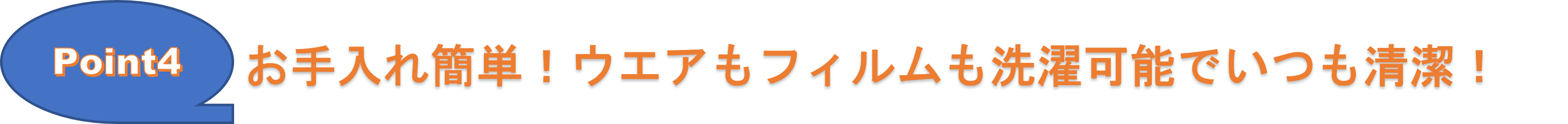 ウエアは通常のお洋服と同じ様に洗濯機へ。フィルムも水洗いが可能です!