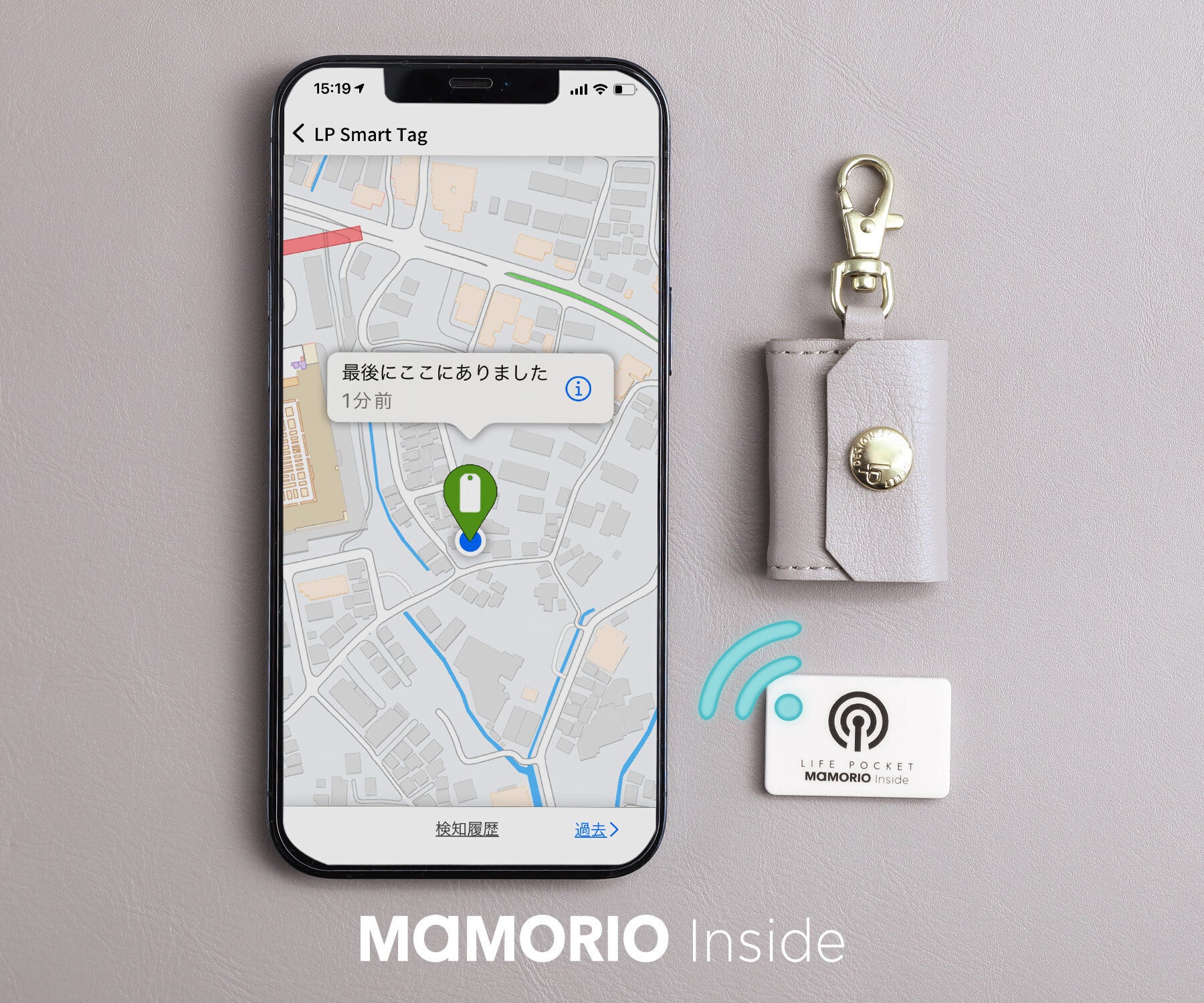 LIFE POCKETが、”スマートチャーム”を作るために、紛失防止タグ認知度No.1*を誇る MAMORIO(マモリオ)社と共同開発した製品です。