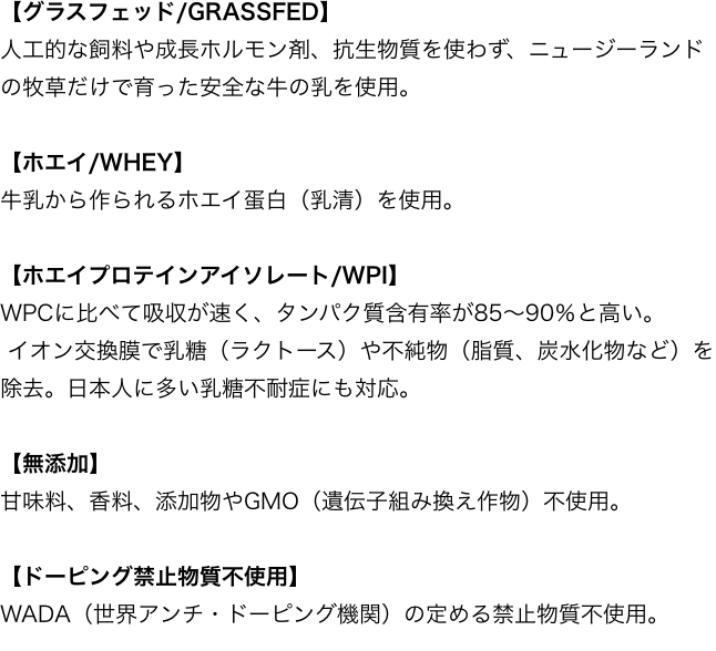 第2弾プロダクト【TAMPACK グラスフェッドWPIホエイプロテイン】は、ニュージーランドの広大な自然の中で牧草を食べてのびのび育った牛のホエイ(乳清)のみを使用した高純度プロテインです。